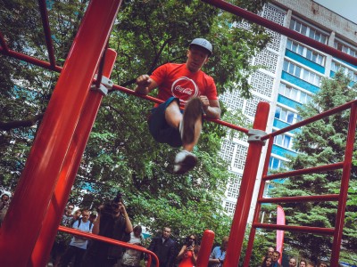 14 июля в Санкт-Петербурге на территории межвузовского студенческого города (Бассейная,8) в рамках реализации программы "В движении" компания Кока-кола совместно с Kenguru.pro презентовали новый уличный комплекс для занятий воркаутом.