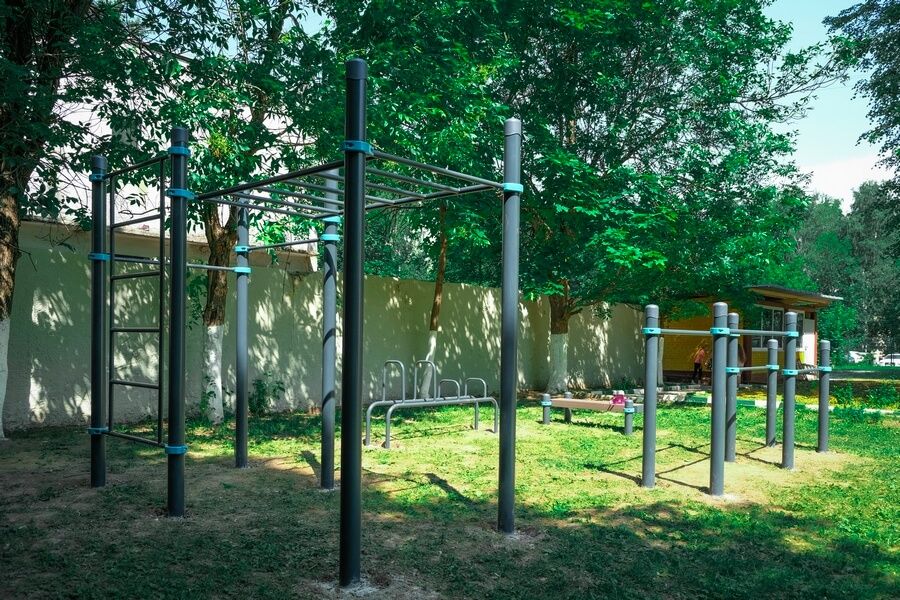 Компактный спортивный комплекс для воркаута рассчитан на 3–4 человек и подходит для всех упражнений с собственным весом: рукоход развивает грудную клетку и координацию, на шведской стенке можно качать пресс и делать растяжку, на турниках можно работать с мышцами спины, плечевого пояса и рук. У снарядов удобный хват, шаг и высота. Зимой с перекладин не соскальзывают руки, а соединение «хомут» позволяет выдерживать 9-кратные нагрузки. За качество тренажеры получили сертификат TUV и рекомендованы к эксплуатации на чемпионатах.