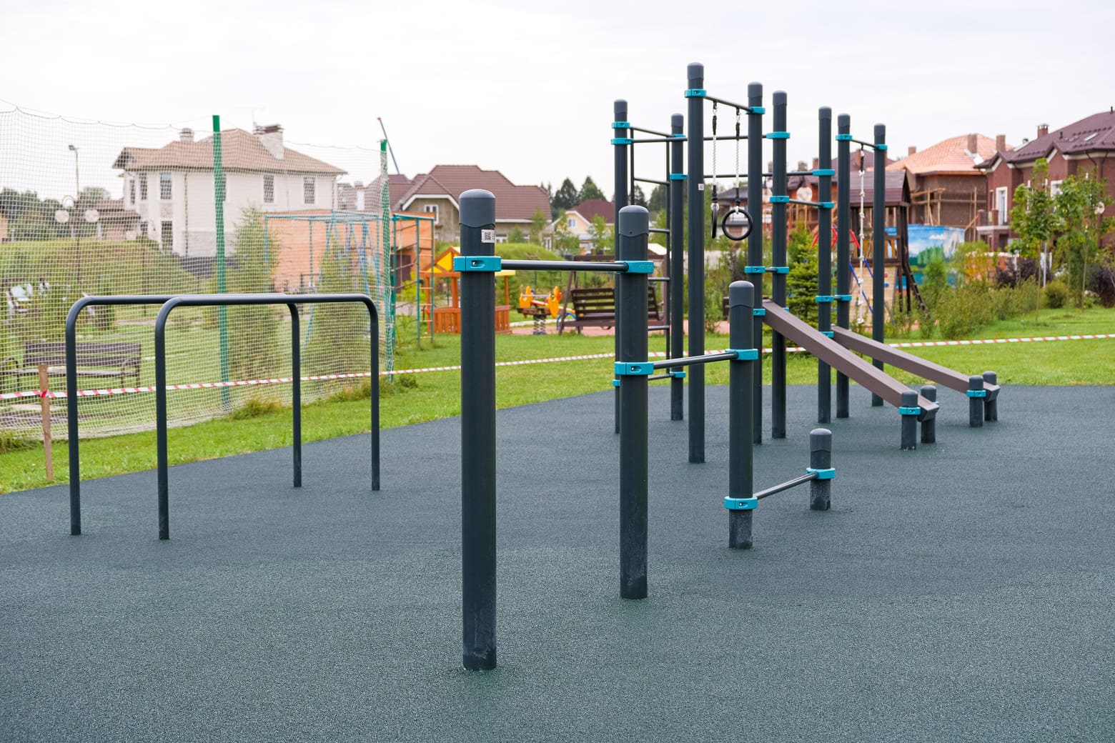 Комплекс состоит из четырёх опорных столбов высотой: 2 шт. - 1500 мм, 1 шт. - 1200 мм, 1 шт. - 400 мм и трёх перекладин для подтягиваний и отжиманий длиной 1200 мм. Элементы крепятся к опорным столбам при помощи хомутов. Высота фиксации перекладин: 1 шт. - 200 мм, 1 шт. - 900 мм, 1 шт. - 1300 мм от поверхности основания. Длина комплекса не более 4100 мм.